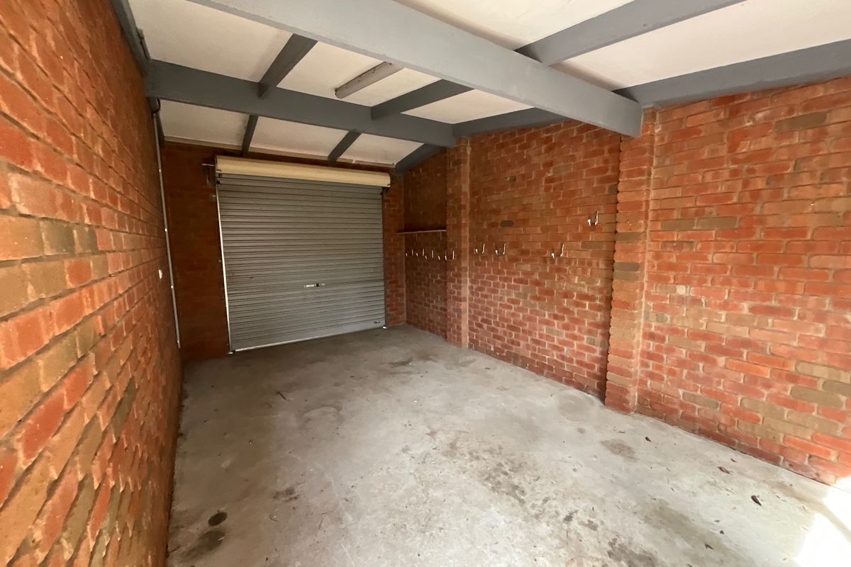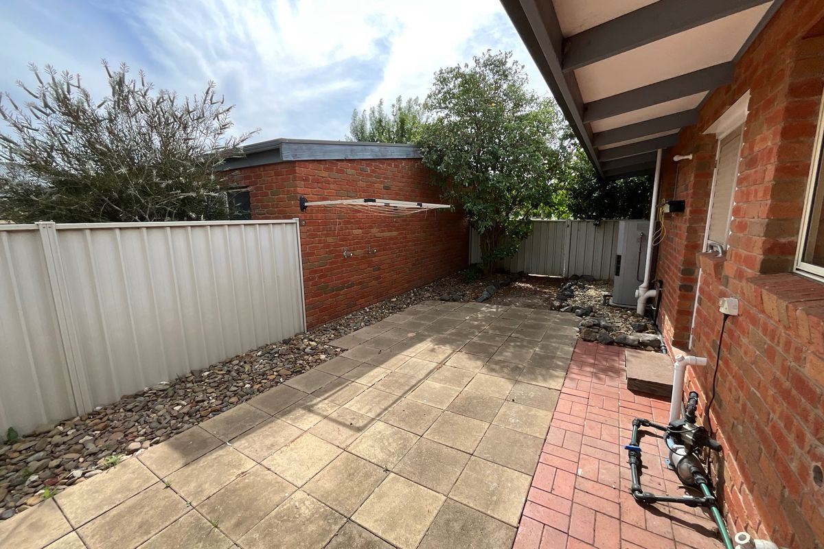 Easy maintenance back yard and side yard with vegetable garden.   Single lock-up garage.   Small secure yard could cater to smaller dog.