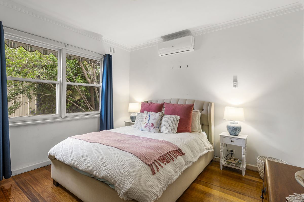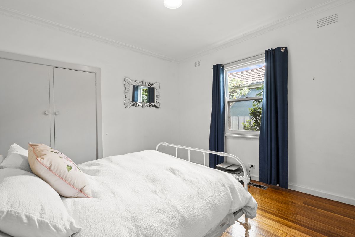 Featuring two generous bedrooms, this home boasts higher ceilings, polished hardwood timber floors, and traditional sash windows, creating a warm and inviting atmosphere throughout. The lounge room enjoys garden views and is equipped with a gas space heater and modern reverse cycle air-conditioner, with additional split-system air-conditioners located in the kitchen and master bedroom. The modern upgraded kitchen is well-appointed with a gas cooktop, electric oven, dishwasher and meals area.