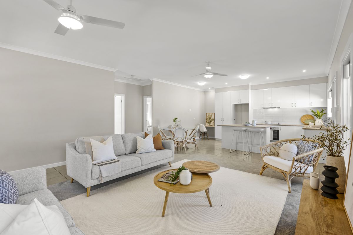 Step inside to a spacious open-plan layout that seamlessly combines the kitchen, meals, and generous lounge area—an inviting space perfect for everyday living or relaxed entertaining. The modern, quality kitchen features an electric oven, ceramic cooktop, island preparation bench with built-in storage drawers, and a handy corner nook ideal for a study spot or extra storage.